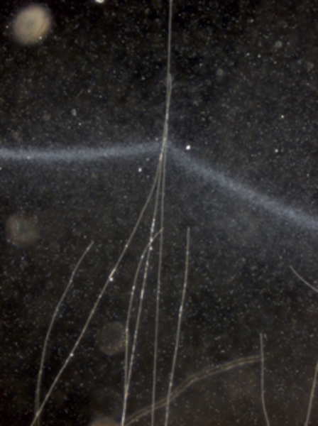 Cable bacteria moving at the oxygen front. Notice how only a minor part of the cells reach oxygen and how the shorter cable bacteria frequently withdraw completely to the oxygen free layer. The video is speeded up 150 times and in reality, the entire sequence is 12 hours.